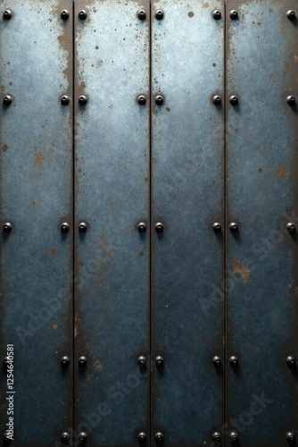 Fototapeta premium Rustic Steel Panel Texture Dark Grey Metal Sheets with Aged Surface and Black Rivets