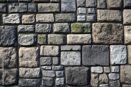 Fototapeta premium Rustic Stone Wall Texture: A Close-Up View of Varied Grey and Beige Stones