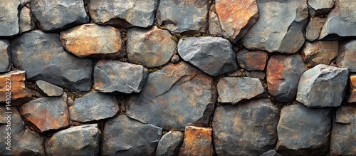 Fototapeta premium Rustic stone wall texture with varied colors and sizes of rocks