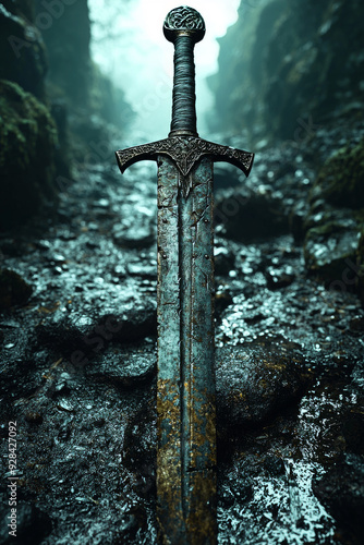 © Vertigo Images, Naklejka premium Rustic Sword with Weathered Armor