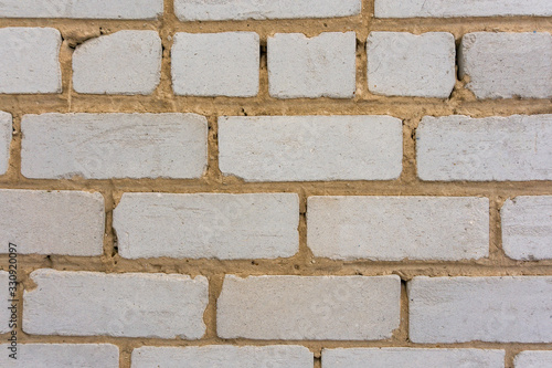 © Алексей Филатов, Fototapeta premium Rustic Texture. Retro White Washed Old Brick Wall Surface. Vintage Building. Painted Plaster