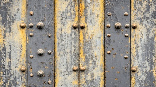 Fototapeta premium Rustic Weathered Door with Metal Rivets and Yellow Accents