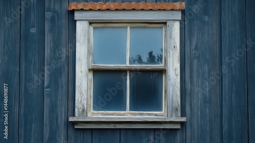 © Sme, Fototapeta premium Rustic Weathered Window on Dark Wood Wall Farmhouse Exterior