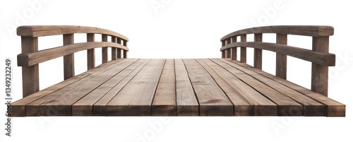 © Enjoy, Obraz premium Rustic Weathered Wooden Footbridge on White Background