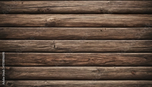 Fototapeta premium Rustic, weathered wooden logs forming horizontal planks, creating a wall. Textured, natural, aged wood.