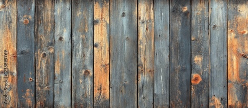 © DigitalDruid, Naklejka premium Rustic weathered wooden planks texture background with natural knots and grain patterns