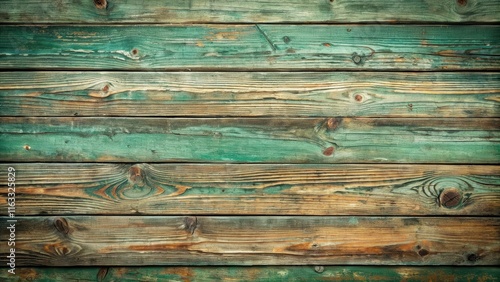 © Jane Studio, Obraz premium Rustic Weathered Wooden Planks with Teal and Brown Hues