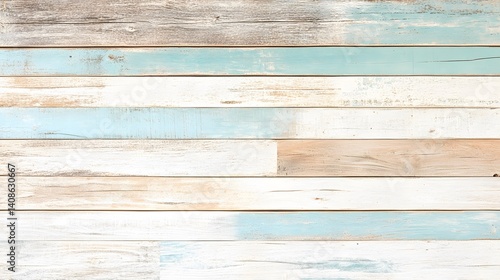 © Abdul, Naklejka premium Rustic Whitewashed Wood Planks Beach Style Background Texture