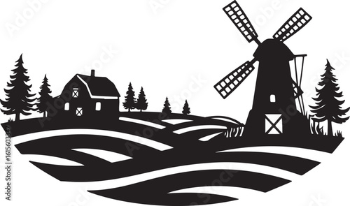 Obraz premium Rustic Windmill Silhouettes Bundle