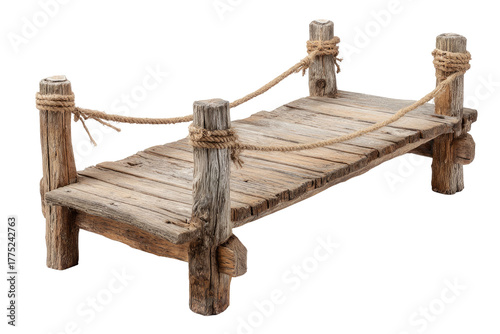 © tolem929, Obraz premium Rustic wood dock with ropes. Isolated on black background