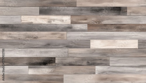Naklejka premium Rustic wood plank flooring design. A mix of light and dark tones creates a warm, natural aesthetic