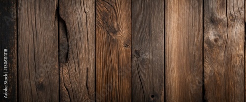 Naklejka premium Rustic wood plank texture background featuring an array of dark and light...
