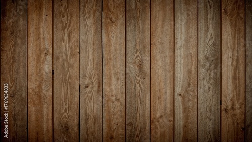 © Lasvu, Obraz premium Rustic wood planks background with appealing vignetting.