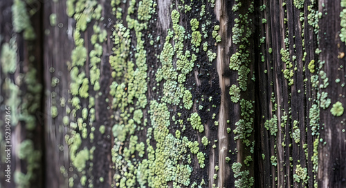 Fototapeta premium Rustic Wood Texture Featuring Moss And Lichen Growth For Natural Backgrounds