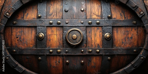 © Jane Studio, Fototapeta premium Rustic wooden barrel background with aged texture perfect for winery or brewery