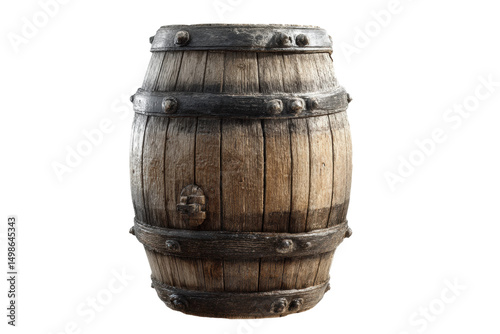 © Mr. Png, Obraz premium Rustic wooden barrel with metal bands on black background, cut out