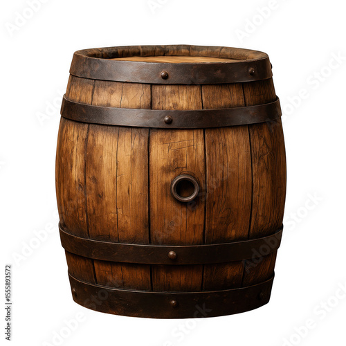 Obraz premium Rustic Wooden Barrel with Metal Hoops – Vintage Storage Container Isolated on...