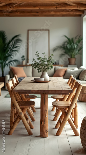 © lina, Obraz premium rustic wooden dining table set a minimalist room
