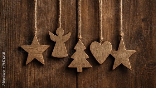 Fototapeta premium Rustic wooden holiday ornaments hanging desktop wallpaper