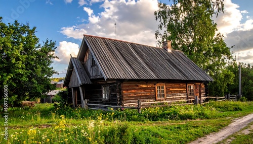 © Anugrah, Fototapeta premium Rustic wooden house in a rural landscape