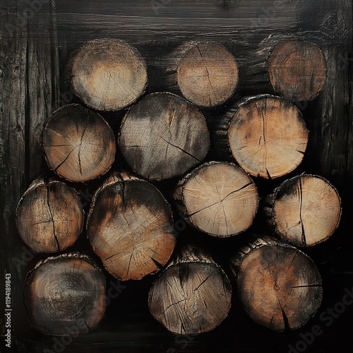 © Infinity, Naklejka premium Rustic Wooden Logs Texture: A Dark, Natural Background