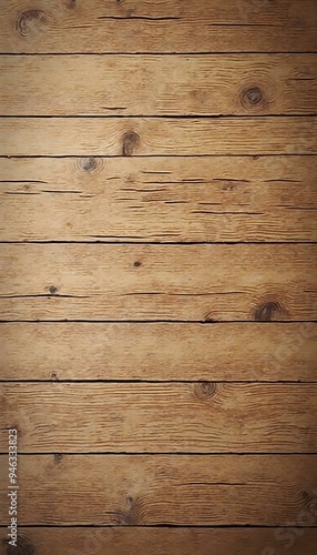 Naklejka premium Rustic wooden plank background with natural grain and subtle knots in warm, earthy tones, creating a cozy, organic feel perfect for farm-to-table branding, nature-themed designs, or home decor.