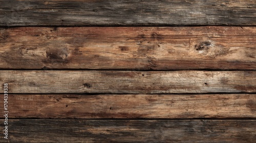 © Johannes, Obraz premium rustic wooden planks backdrop showing textured grains and aged finish in a panoramic view