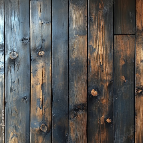 © Lui Shtein, Fototapeta premium Rustic wooden planks with burned effect for authentic vintage texture