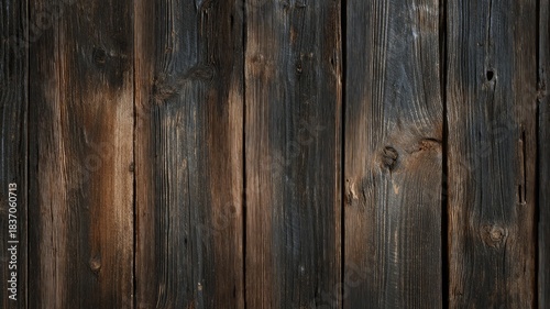 © Larysa, Fototapeta premium Rustic wooden planks with dark tones. AI image