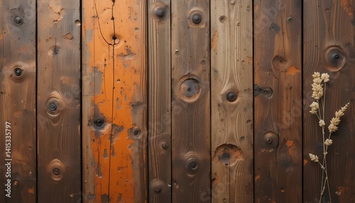 © Afif, Fototapeta premium Rustic Wooden Texture Background Faded Orange, Brown, and Wheat Tones