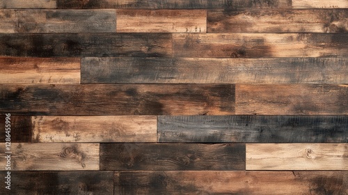 Fototapeta premium Rustic wooden wall texture with dark and light brown planks, natural patterns, ideal for interior design, backgrounds, and home decor projects.