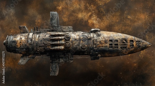 Fototapeta premium Rusty, aged, futuristic spacecraft in space