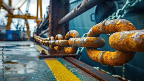 Obraz premium Rusty Chain Link Detail in Shipping Port