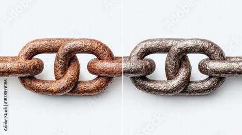 © PixelCrafted, Obraz premium Rusty chain links side by side