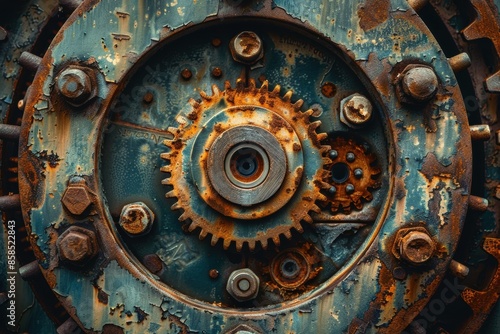 Fototapeta premium Rusty Gears: A Close-Up Look at Time