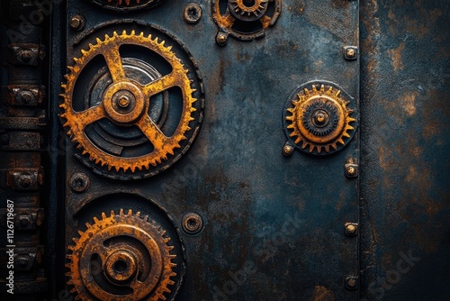 Fototapeta premium Rusty gears and cogs creating a steampunk background