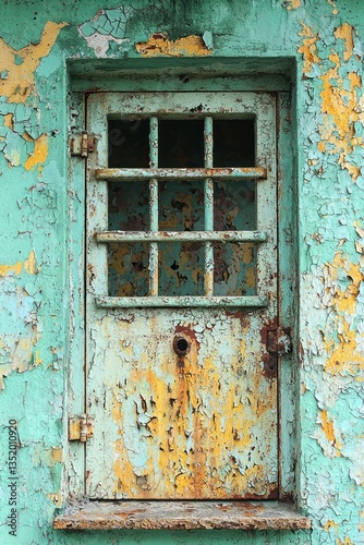 Naklejka premium Rusty, Green, and Weathered Metal Door with Peeling Paint