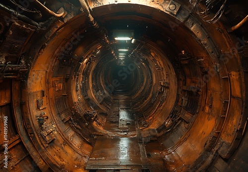 Obraz premium Rusty Industrial Tunnel Interior Deep Within Earth