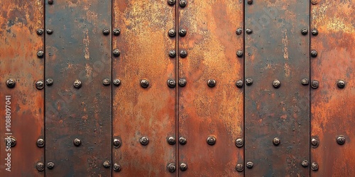 © HN Works, Fototapeta premium rusty iron backdrop featuring rivets