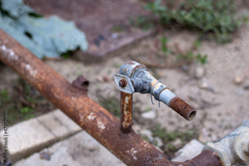 Fototapeta premium Rusty iron plumbing faucet. Old plumbing.
