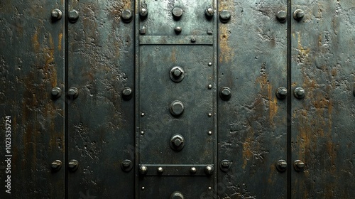 Fototapeta premium Rusty Metal Door with Rivets and Decorative Panels