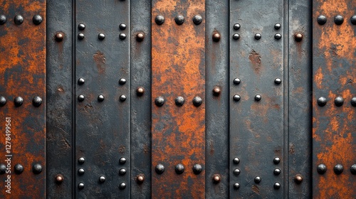 Fototapeta premium Rusty metal gate texture, outdoors, grunge background, industrial design