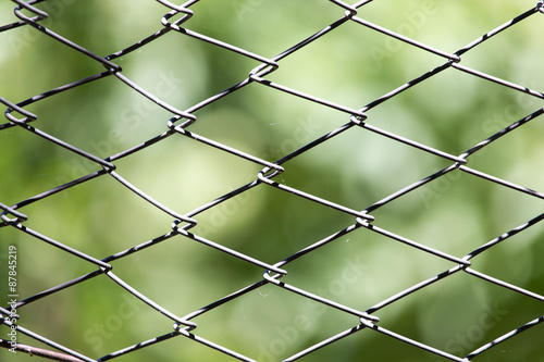 © schankz, Fototapeta premium Rusty metal grille fence macro and nature background