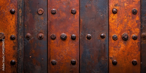 © Denis Tuev, Fototapeta premium Rusty metal rivets and bolts, partially covered with patina.