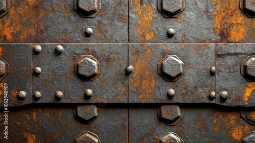 Fototapeta premium Rusty metal surface with bolts and rivets.