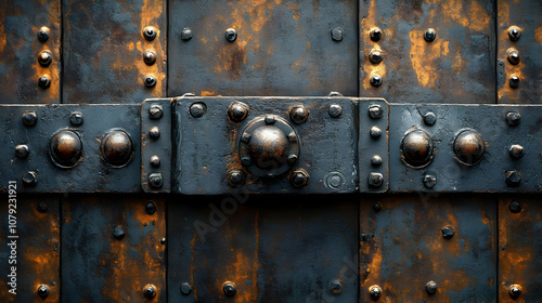© darion, Fototapeta premium Rusty Metal Texture Background - Steel Panels With Rivets