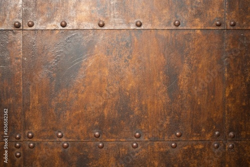 © Alam, Fototapeta premium Rusty metal texture background with rivets, perfect for adding a vintage or industrial touch to your designs and projects with a unique look