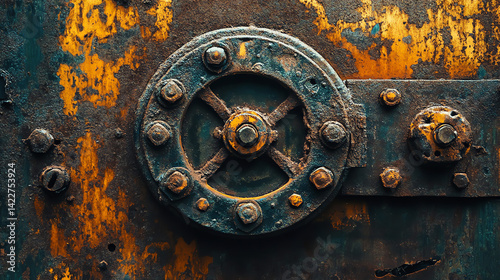 © Andry, Fototapeta premium Rusty Metal Wheel Gear Closeup Texture Background