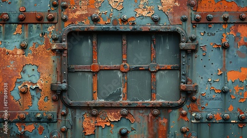 Naklejka premium Rusty metal with flaky paint, evoking abandoned urban settings and industrial...