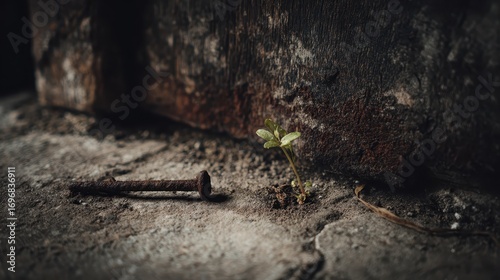 © Husein, Fototapeta premium Rusty Nail in Decaying Wooden Structure.